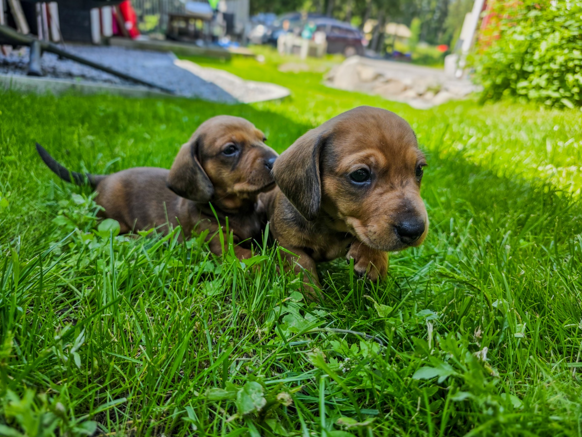 Etta synnytti hyvällä tahdilla koko pentueen kuudessa tunnissa. Pennut oikein tasaisen oloisia, rohkeita ja sosiaalisia.